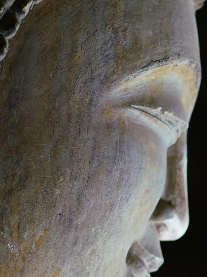 近日,一名古建爱好者在山东省济南市四门塔景区参观,发现一处佛头侧面有“山东省测绘局十五人到此……”的刻字,其感到愤怒、遗憾和无奈。网友直言,佛头刻字,没有敬畏之心,这是破坏文物,违规违法。